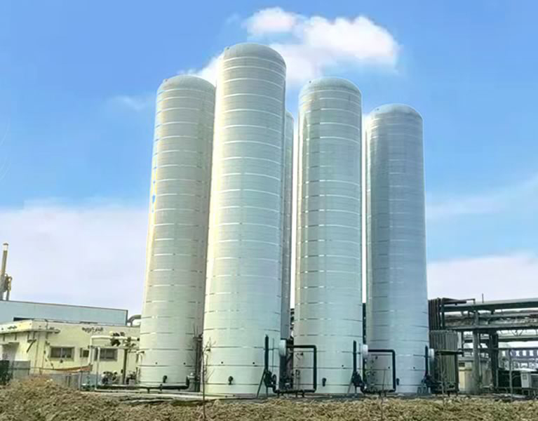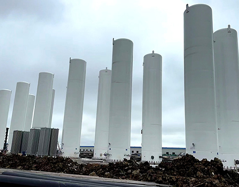 Cryogenic storage tanks are vertical or horizontal double-layered vacuum insulated tanks. The inner liner is made of austenitic stainless steel, and the outer container material is selected according to national regulations, such as Q235-B or 345R, depending on the user's region. The sandwich between the inner and outer containers is filled with perlite insulation material and evacuated. They are widely used in the electronics, chemical, petroleum, and glass industries.